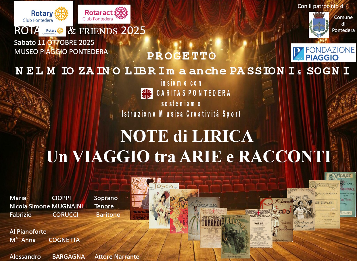Il ricavato della serata andrà a sostenere il progetto “Nel mio zaino libri ma anche sogni e passioni” coordinato dalla Caritas di Pontedera.